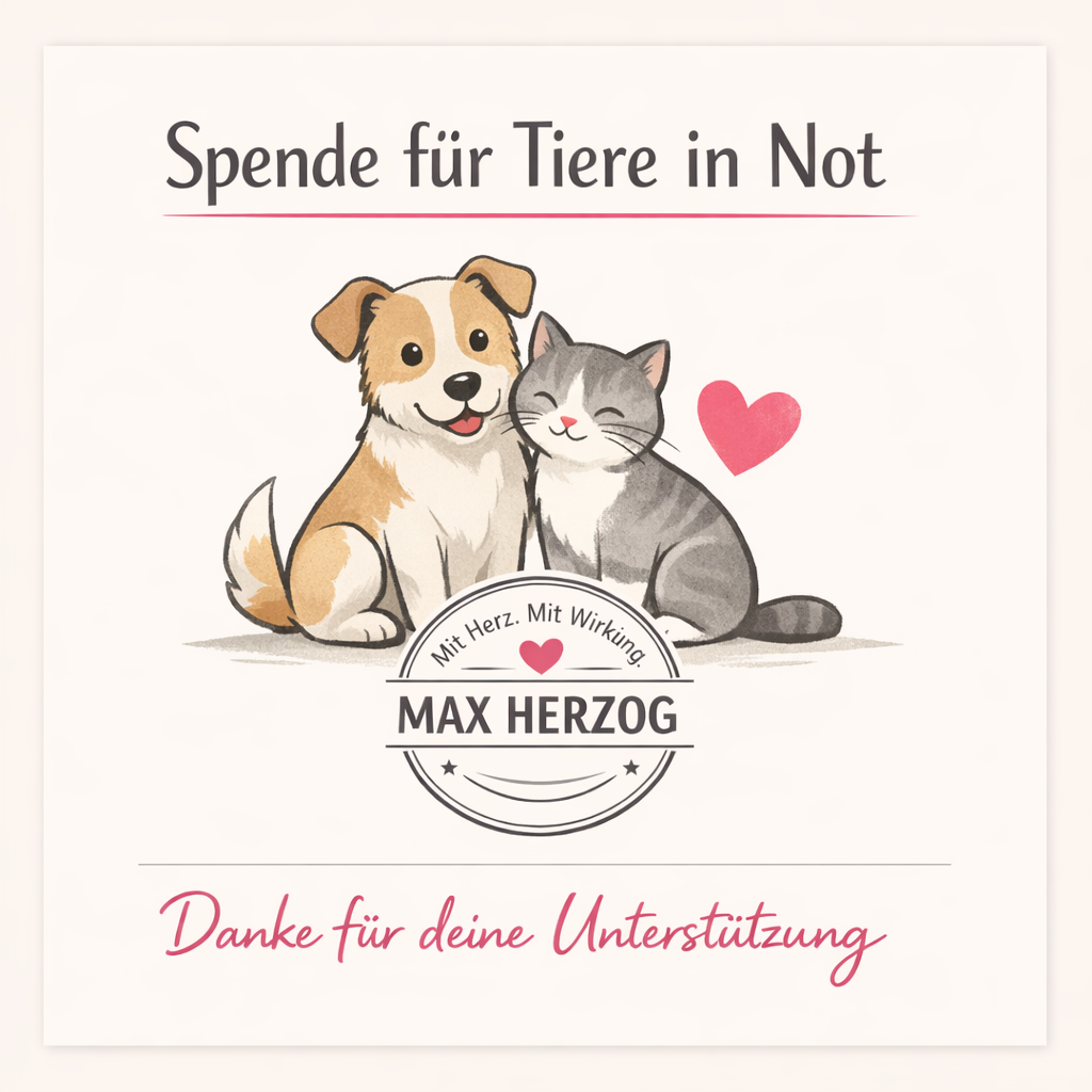 Mit dieser einmaligen 100 €-Spende hilfst du Organisationen, die sich aktiv für verlassene und verletzte Tiere einsetzen. Jede Spende wird gesammelt, dokumentiert und transparent eingesetzt – echte Hilfe statt leere Worte.